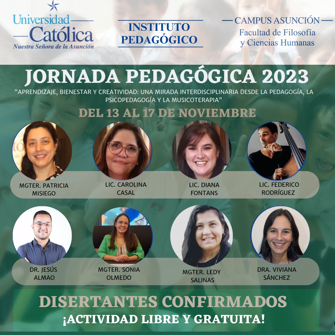 Y en el mismo espacio educativo de intercambio de conociemientos y experiencias se desarrolla la Jornada Pedagógica 2023 «Aprendizaje, Bienestar y Creatividad: Una mirada interdisciplinaria desde la pedagogía, la psicopedagogía y la musicoterapia».