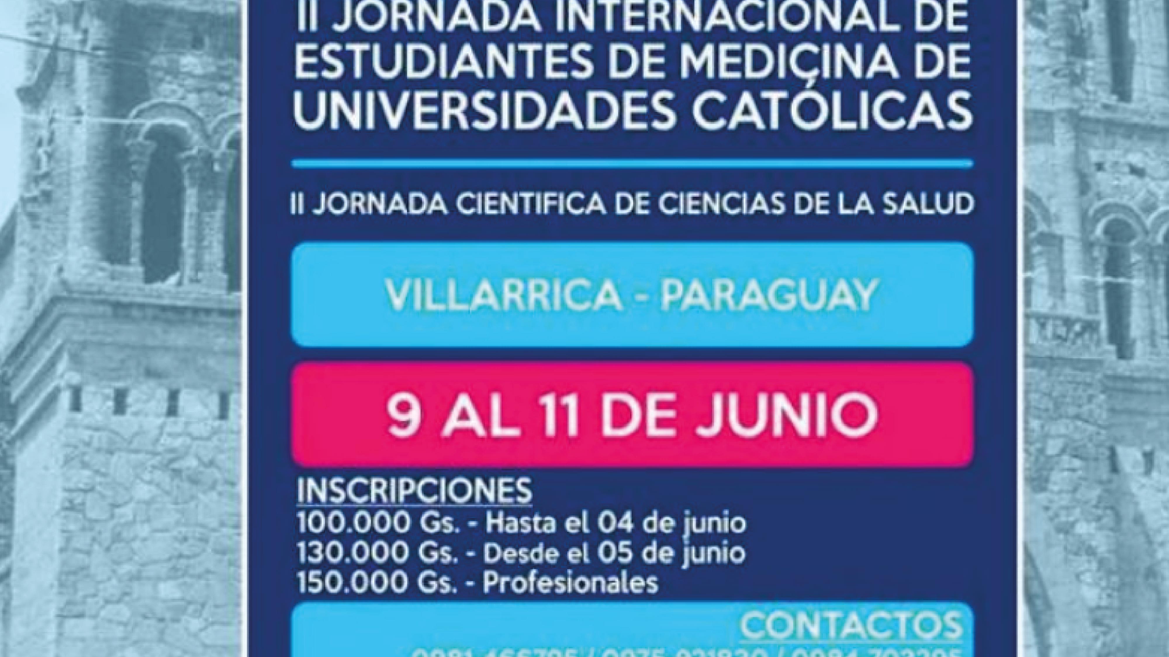 Costo de participación: 130.000 guaraníes para estudiantes y 150.000 guaraníes para profesionales. Organiza el Centro de Estudiantes de Medicina del Campus de Guairá.