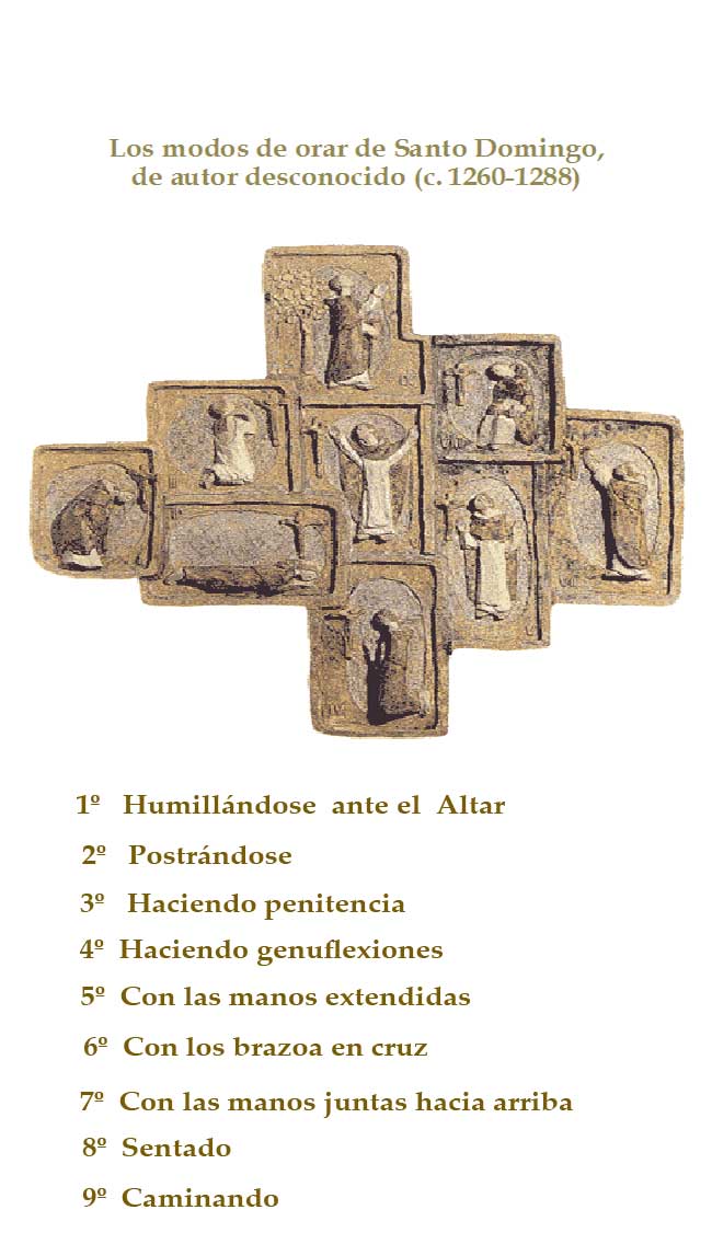 Manos juntas: la persona se recoge dentro de sí y se une a Dios, evitando las distracciones exteriores. También indica el gesto inicial de petición.