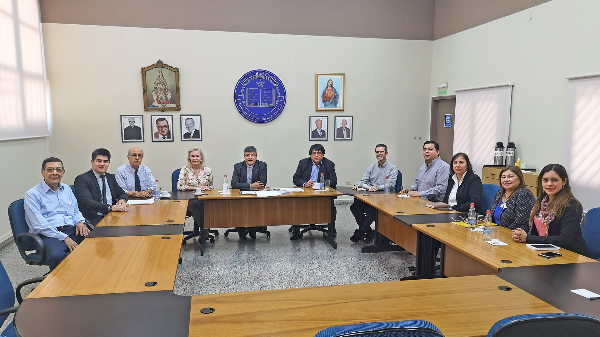 En cumplimiento a los compromisos académicos y administrativos, miembros del Consejo de Gobierno se reunieron, hoy en la Sede Rectorado, con representantes del Campus Itapúa, en una mesa de trabajo conjunto en torno al trabajo regular de la sede y evaluar posibles acciones emergentes.