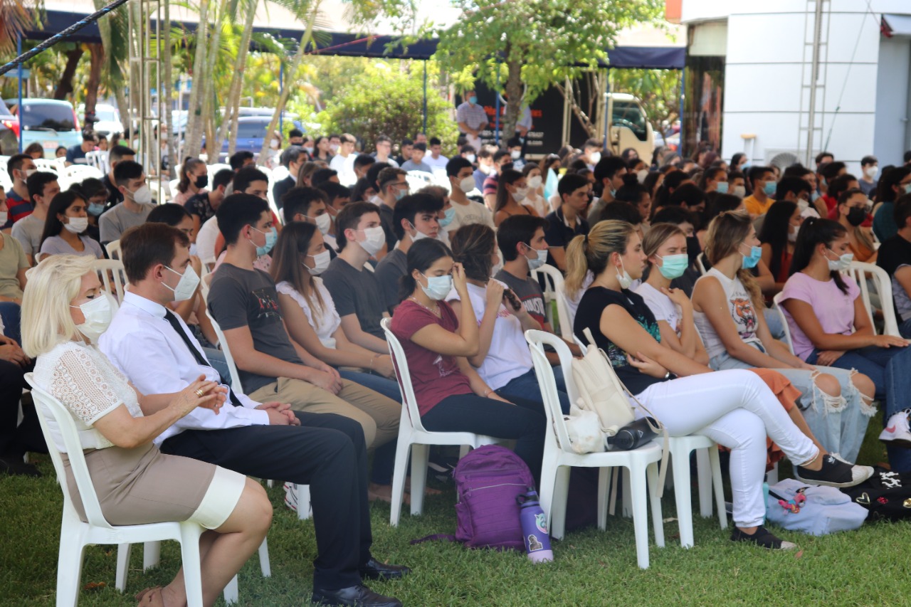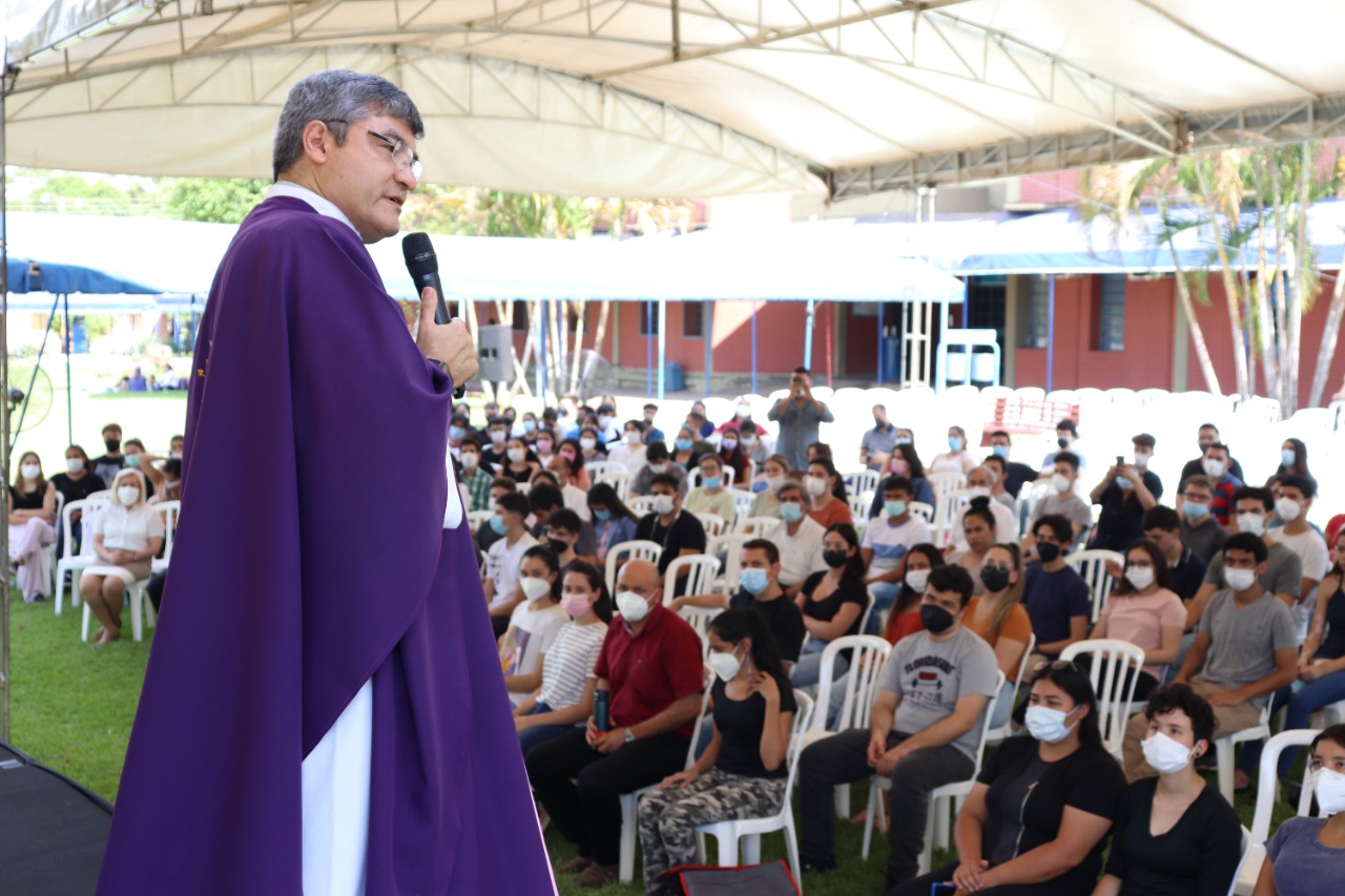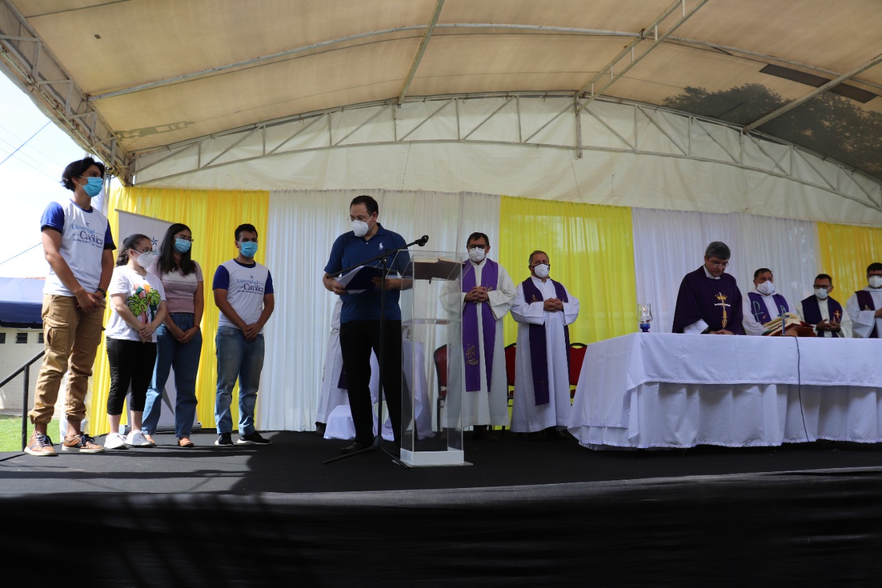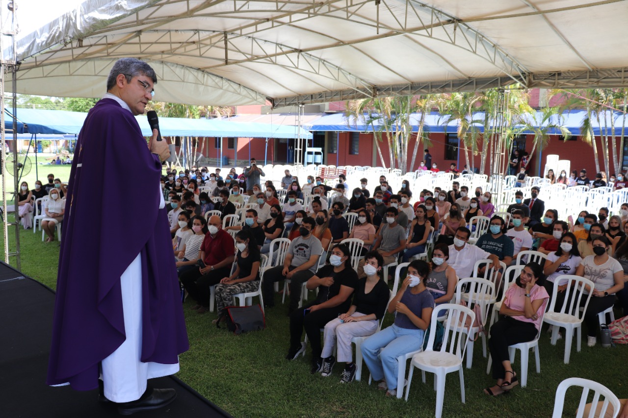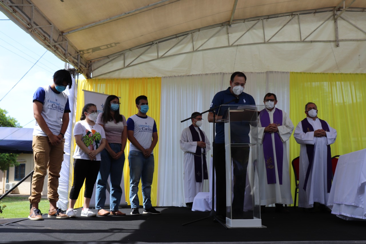 Durante su alocución el Padre Rector pidió a los estudiantes el compromiso necesario con sus estudios para entregar el 100% de sí mismos durante los años por cursar la carrera de grado y los alentó dejando un poderoso mensaje: «Como la lluvia que baja del cielo y empapa la tierra y la hace germinar así es mi palabra dice el Señor, y esa palabra es también para ustedes ¡Queridos estudiantes, bienvenidos a la Universidad Católica!, en ustedes y con ustedes iremos escribiendo la nueva historia del Paraguay, dejemos que esta experiencia transforme tu vida, dejemos que este caminar ciertamente te vaya capacitando cada vez mejor para dar respuestas a tu corazón, para dar respuesta a tu historia, para dar respuesta a tu sociedad, de nuestra parte cuenten con nosotros para todo lo que sea necesario», enfatizó.