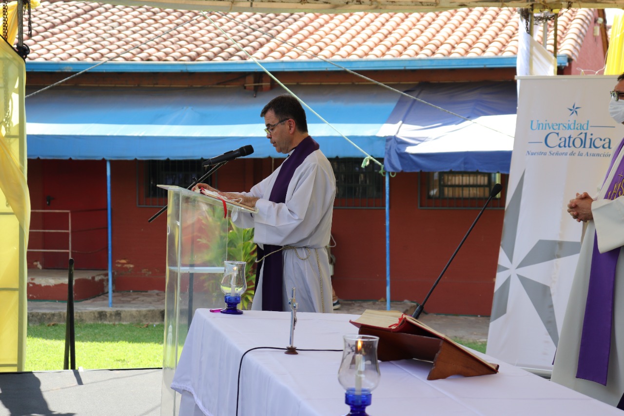 El martes 8 de marzo de 2022, en la Sede «Santa Librada» del Campus Asunción, el Pbro. Dr. Narciso Velázquez, rector de la Universidad Católica, presidió una celebración eucarística por la culminación de la Jornada de Fe y Ciencia del Curso de Admisión del Campus de Asunción, la primera de las tres misas de acción de gracias previstas para el día de hoy, en los tres turnos de Admisión.