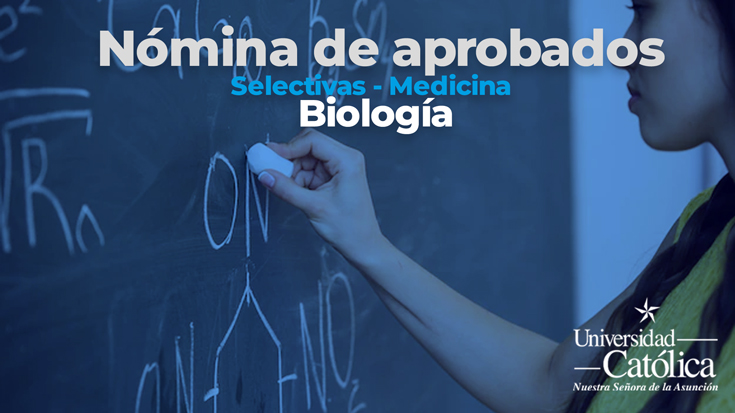 La Dirección de Admisión de la Universidad Católica «Nuestra Señora de la Asunción» Campus Asunción, dio a conocer la nómina de estudiantes que aprobaron la asignatura de Biología, de las materias selectivas para el ingreso a la carrera de Medicina de la Facultad de Ciencias de la Salud en el Campus Universitario Asunción, en la convocatoria Marzo 2022 del curso de admisión.