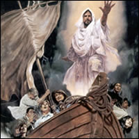 Después Jesús subió a la barca y sus discípulos lo siguieron. De pronto se desató en el mar una tormenta tan grande, que las olas cubrían la barca. Mientras tanto, Jesús dormía. Acercándose a él, sus discípulos lo despertaron, diciéndole: «¡Sálvanos, Señor, nos hundimos!». Él les respondió: «¿Por qué tienen miedo, hombres de poca fe?». Y levantándose, increpó al viento y al mar, y sobrevino una gran calma. Los hombres se decían entonces, llenos de admiración: «¿Quién es éste, que hasta el viento y el mar le obedecen?».