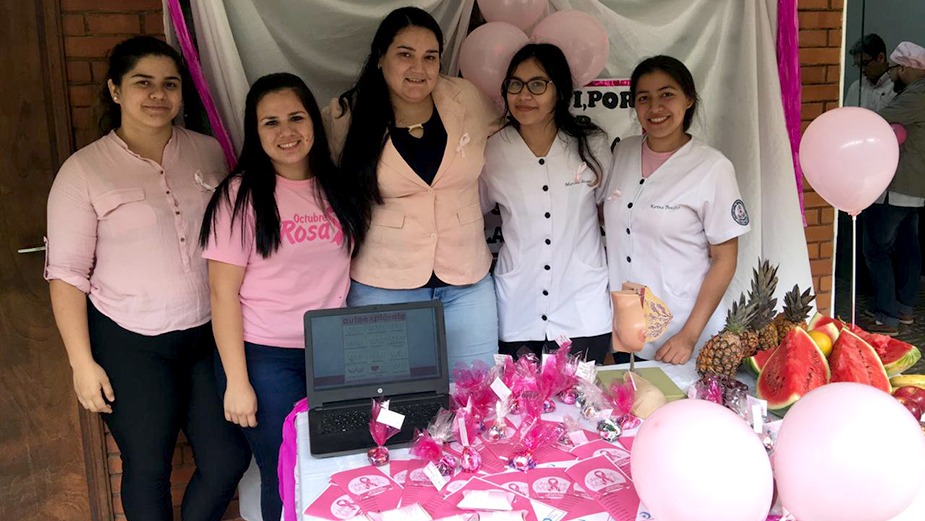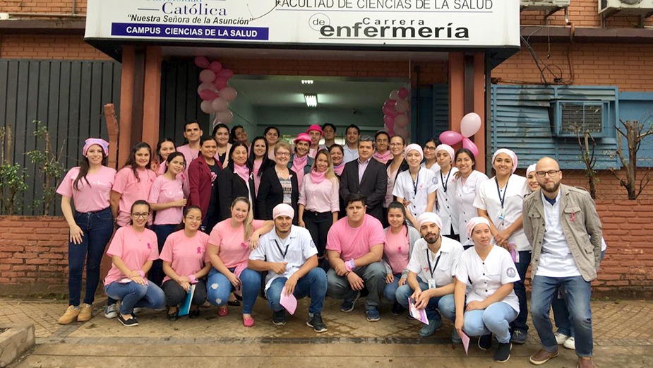 Estudiantes del segundo año de la carrera de Enfermería de la Universidad Católica «Nuestra Señora de la Asunción» conmemoraron el Día Internacional de Lucha contra el cáncer de mama, con una jornada de prevención y recordación en la sede del Campus Ciencias de la Salud.