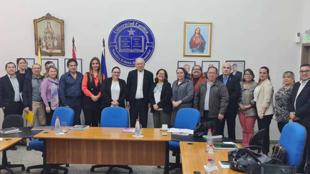En el Rectorado de la Universidad Católica se llevó a cabo una mesa de trabajo el pasado jueves 23 de mayo, que reunió a representantes del Ministerio de Educación y Ciencias (MEC) y de la Pastoral Educativa de la Conferencia Episcopal Paraguaya (CEP). El objetivo central del encuentro fue tratar el calendario de concursos de docentes para los colegios católicos subvencionados y analizar diversos ejes temáticos para los exámenes, todo en el marco del convenio de colaboración vigente entre el Ministerio y la CEP.