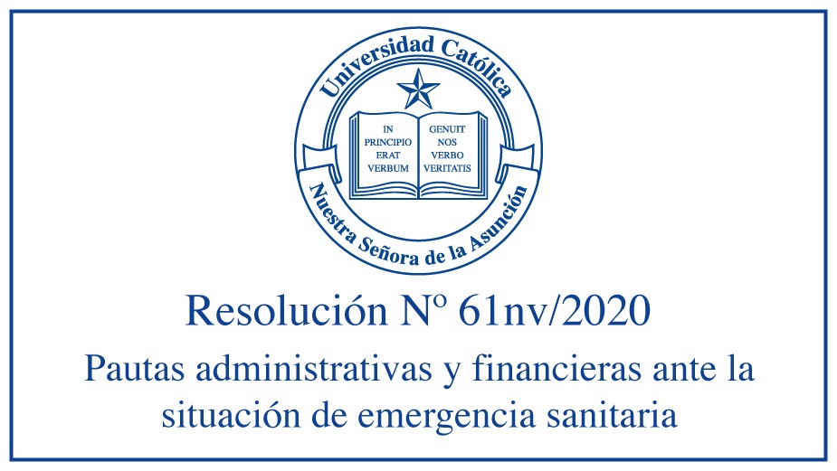 POR TANTO, el Consejo de Gobierno General de la Universidad Católica «Nuestra Señora de la Asunción», en su sesión de fecha 17 de mayo de 2020 y en uso de sus atribuciones;