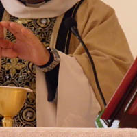 El sacerdote toma el cuerpo y la sangre de Cristo y se dirige al Padre con una;