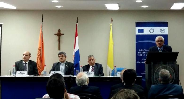 La Organización Internacional del Trabajo OIT y la Universidad Católica “Nuestra Señora de la Asunción”, presentaron el 7 de mayo pasado, el Diplomado “El Sistema Normativo de la OIT. Los instrumentos normativos de la OIT. La constitucionalización de los Derechos Laborales en el Paraguay. Análisis, sistematización y alcances jurídicos” en el Aula Magna de la Sede Central.