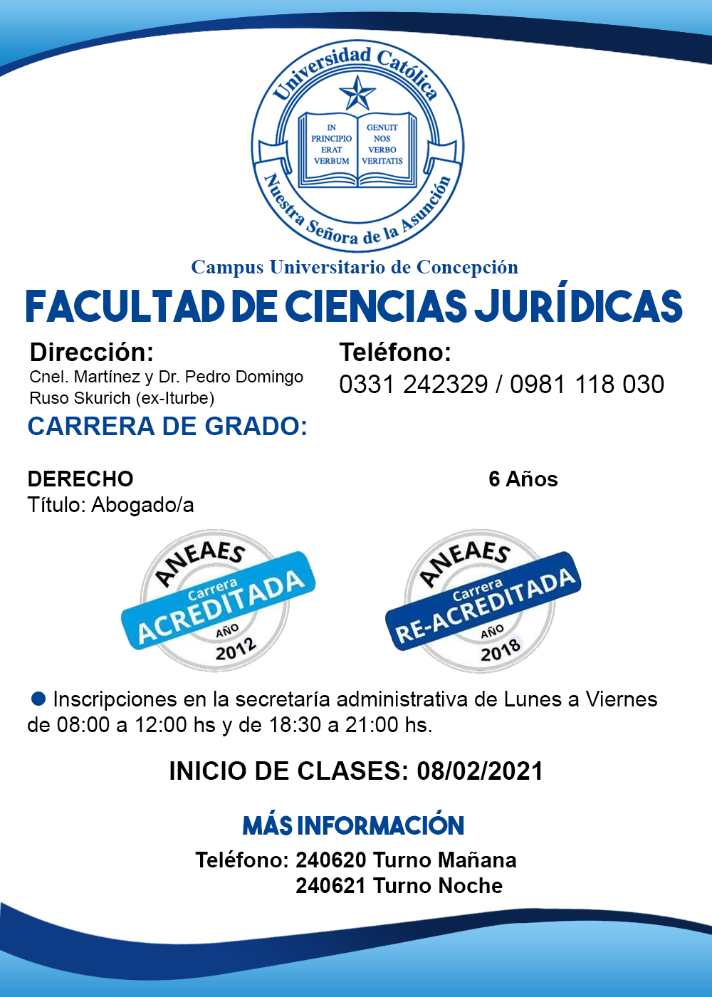 La Universidad Católica «Nuestra Señora de la Asunción» comprometida con la formación técnica y profesional de los jóvenes, cuenta con una amplia oferta académica en cada una de sus sedes, en todo el país con carreras acreditadas en calidad de educación. Presente desde hace 59 años en la ciudad de Concepción, al servicio de la educación superior.
