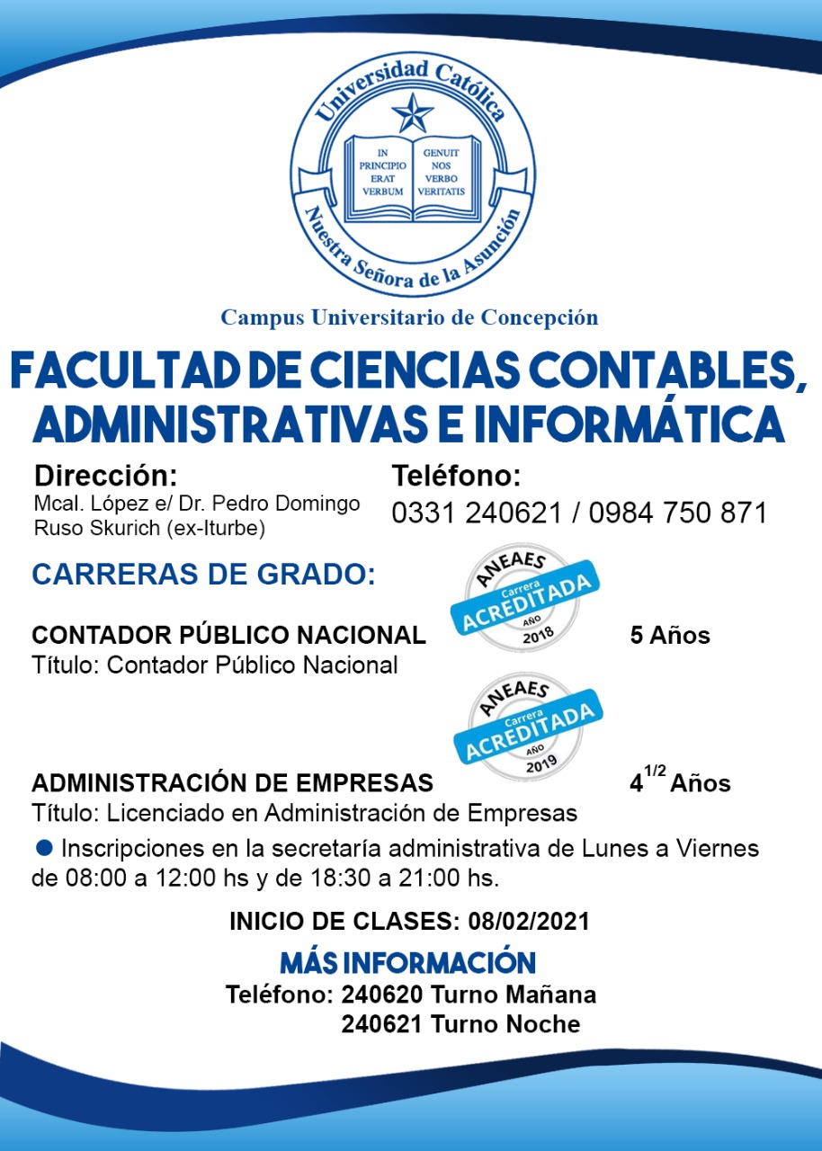 Lugar de estudio: Campus Concepción – Fac. de Ciencias Contables, Administrativas e Informáticas.