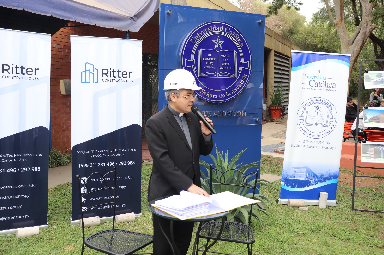 El martes 5 de septiembre, se llevó a cabo la palada inicial y la bendición de las nuevas obras para la ampliación de las instalaciones de la Facultad de Ciencias y Tecnología del Campus Asunción con la construcción del nuevo “Bloque G”, este nuevo espacio estará destinado a aulas y un salón auditorio y su extensión permitirá brindar comodidad a los estudiantes.