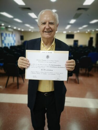 Al finalizar su disertación, se le hizo entrega de un diploma y medalla que lo acreditan como Académico de número de la Academia Paraguaya de la Lengua Española, que a partir de la fecha “incorpora a alguien sumamente importante para la cultura del Paraguay y de Latinoamérica, y estamos muy felices contigo” en palabras del presidente de la APARLE Bernardo Neri Farina.
