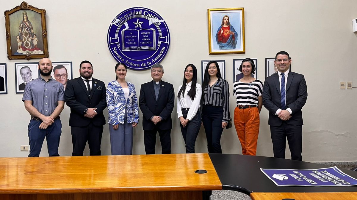 El Pbro. Dr. Narciso Velázquez Ferreira recibió a un grupo de egresados destacados de la Universidad Católica “Nuestra Señora de la Asunción” que fueron adjudicados con las becas de Chevening, Chevening CAL y Becal para realizar estudios de maestría en el Reino Unido, la reunión se realizó en la sala de sesiones del Rectorado, el pasado 30 de agosto.