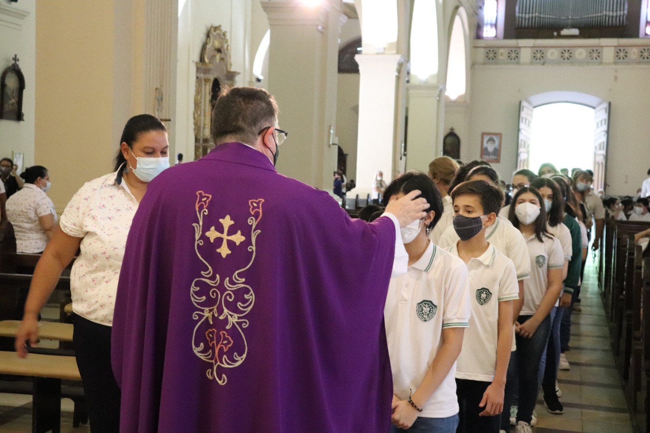 Miembros de la comunidad educativa de la Universidad Católica «Nuestra Señora de la Asunción», Escuela Santa Luisa de Marillac y el Colegio La Providencia Universidad Católica participaron de la Santa Misa de Miércoles de Ceniza realizada en la Catedral Metropolitana de Asunción, presidida por el Padre Julio Rojas, director de la Pastoral Universitaria Campus Asunción.