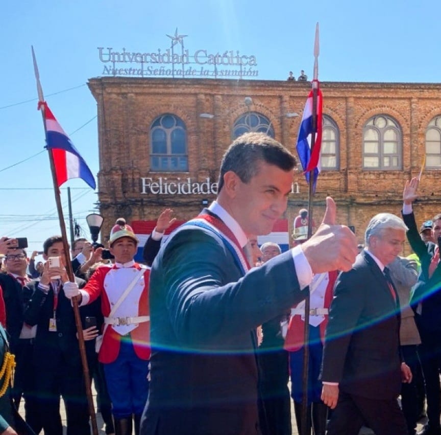 Luego del juramento de rigor en la fachada litoral del Palacio de López llegó a la Catedral Metropolitana para participar del Solemne TE DEUM presidido por S.E.R. Adalberto Cardenal Martínez Flores, donde se elevó una plegaria de acción de gracias también por los 486 años de la fundación de nuestra capital.