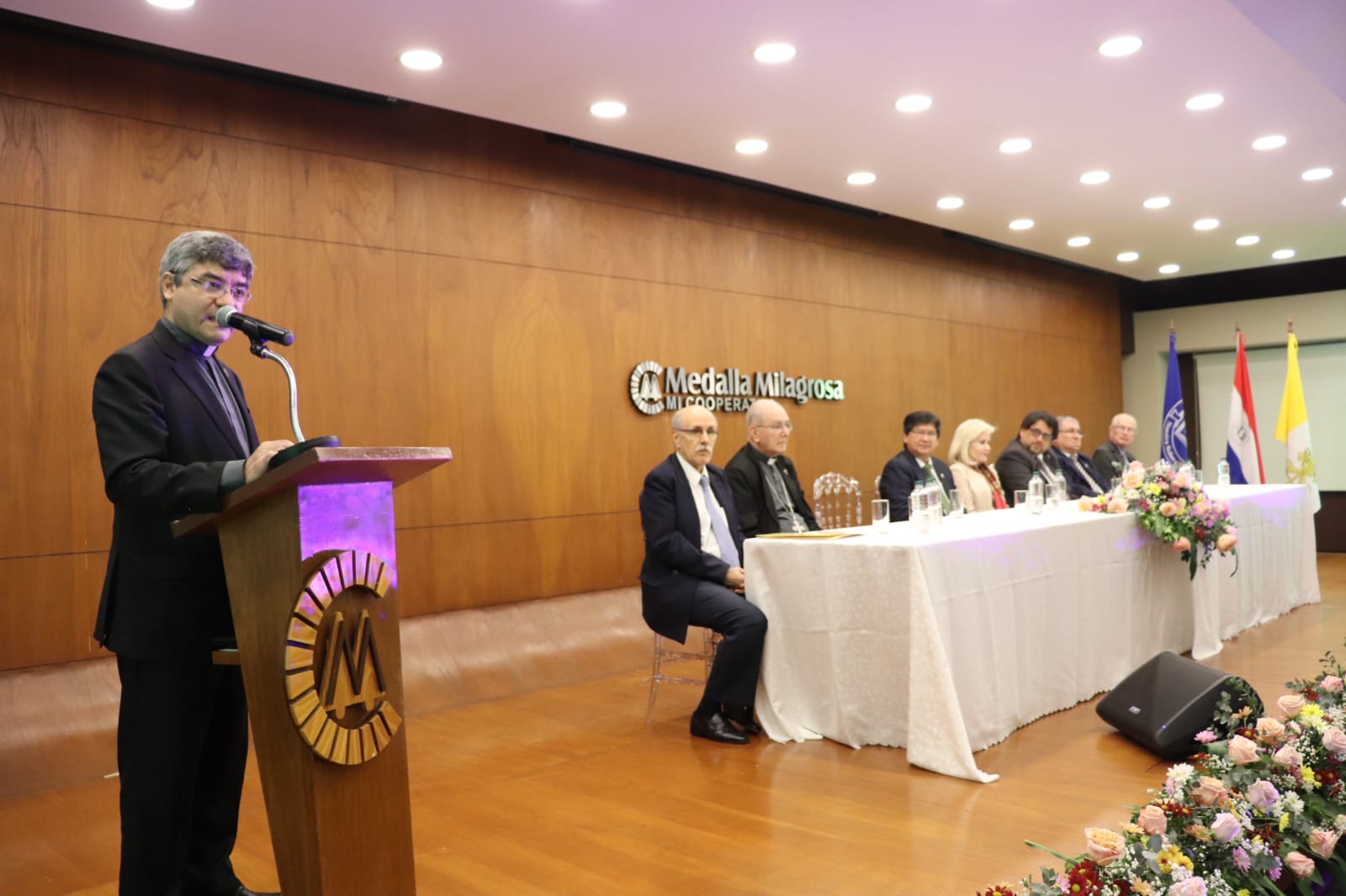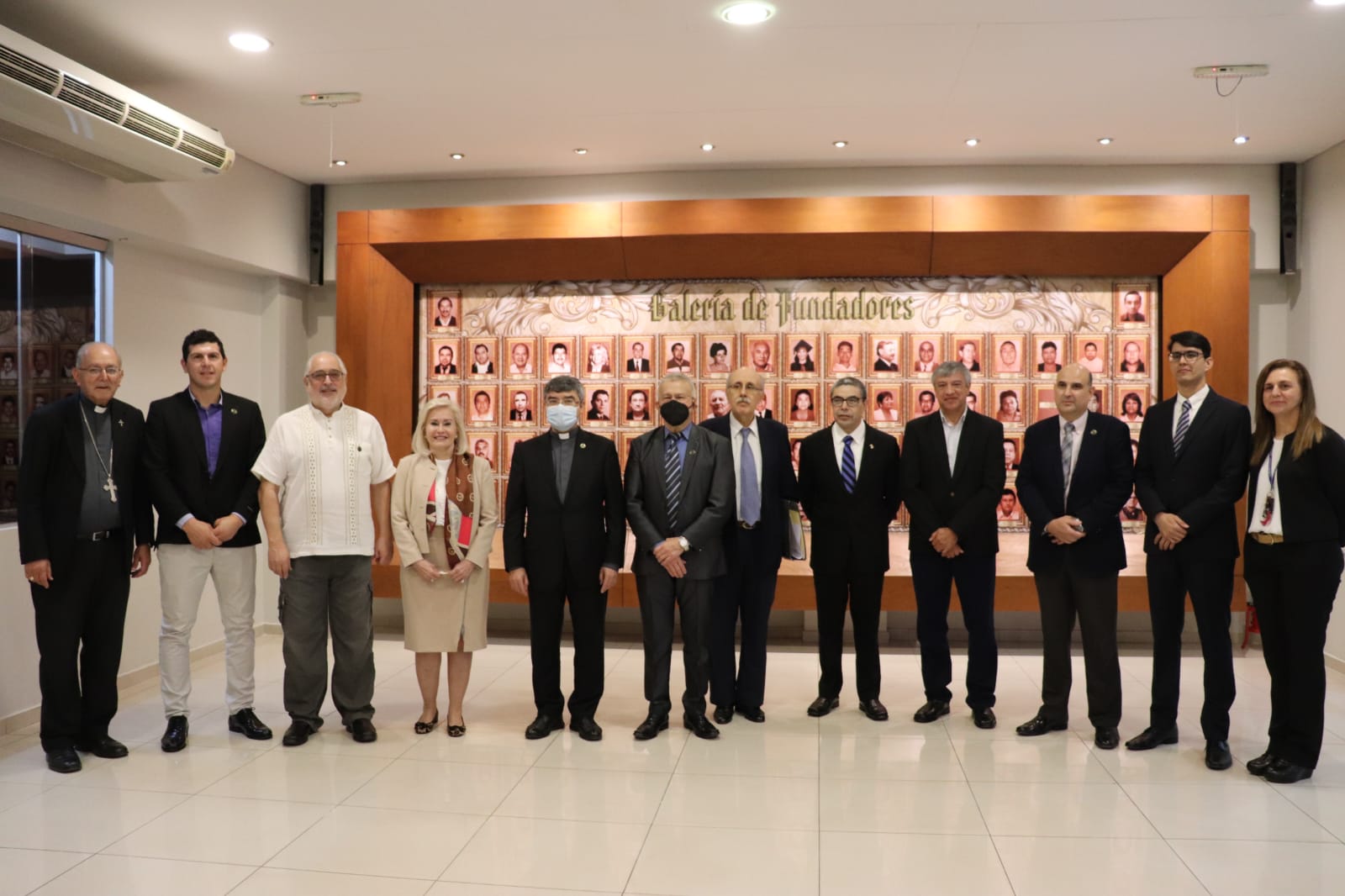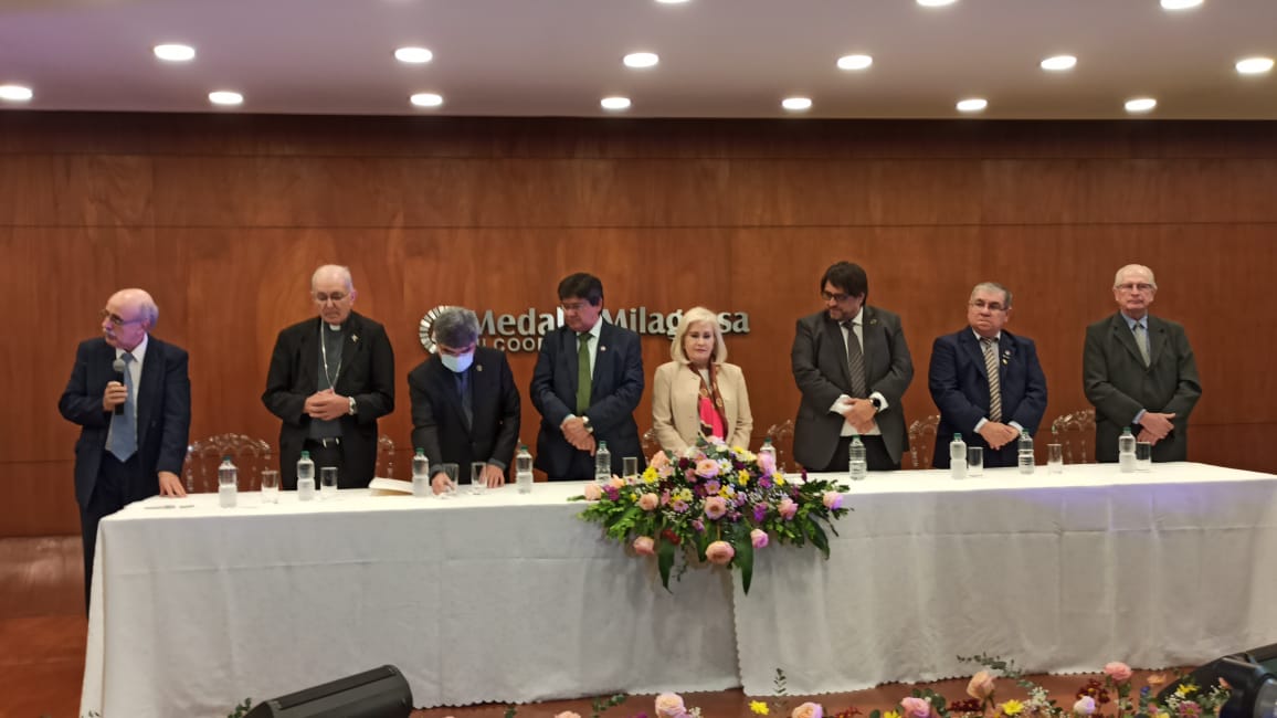 Allí se dieron cita autoridades del Consejo de Gobierno de la Universidad, Monseñor Edmundo Valenzuela Mellid, Gran Canciller, Pbro. Dr. Narciso Velázquez Ferreira Velázquez, los vicerrectores, Mag. Teresa de Jesús Servín y Mag. José Guillermo Von Lucken, directivos, docentes, funcionarios administrativos y directivos de la Cooperativa Medalla Milagrosa.