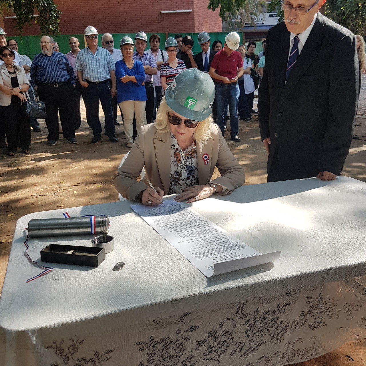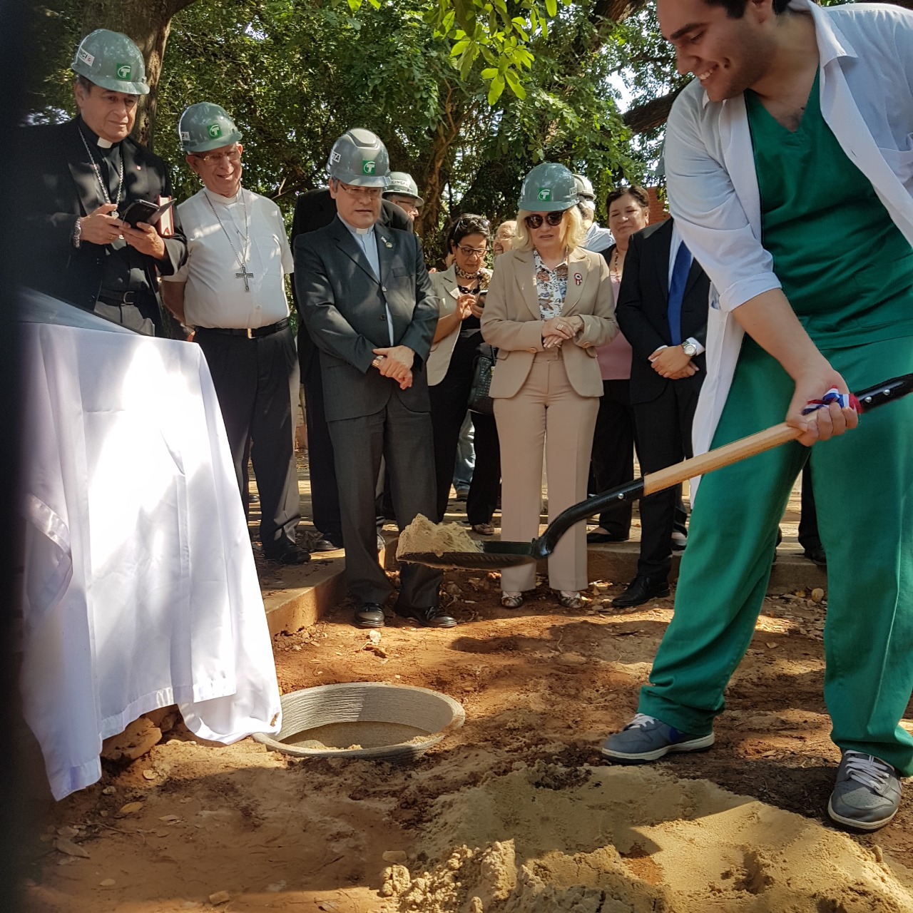 En Rector de la Universidad Católica “Nuestra Señora de la Asunción”, Pbro. Dr. Narciso Velázquez Ferreira instaló la piedra fundamental que inicia la construcción de la Facultad de Ciencias de la Salud, en el predio del Hospital Universitario, en barrio San Cristóbal de la ciudad de Asunción, en un emotivo acto al mediodía de hoy jueves 10 de mayo de 2018.