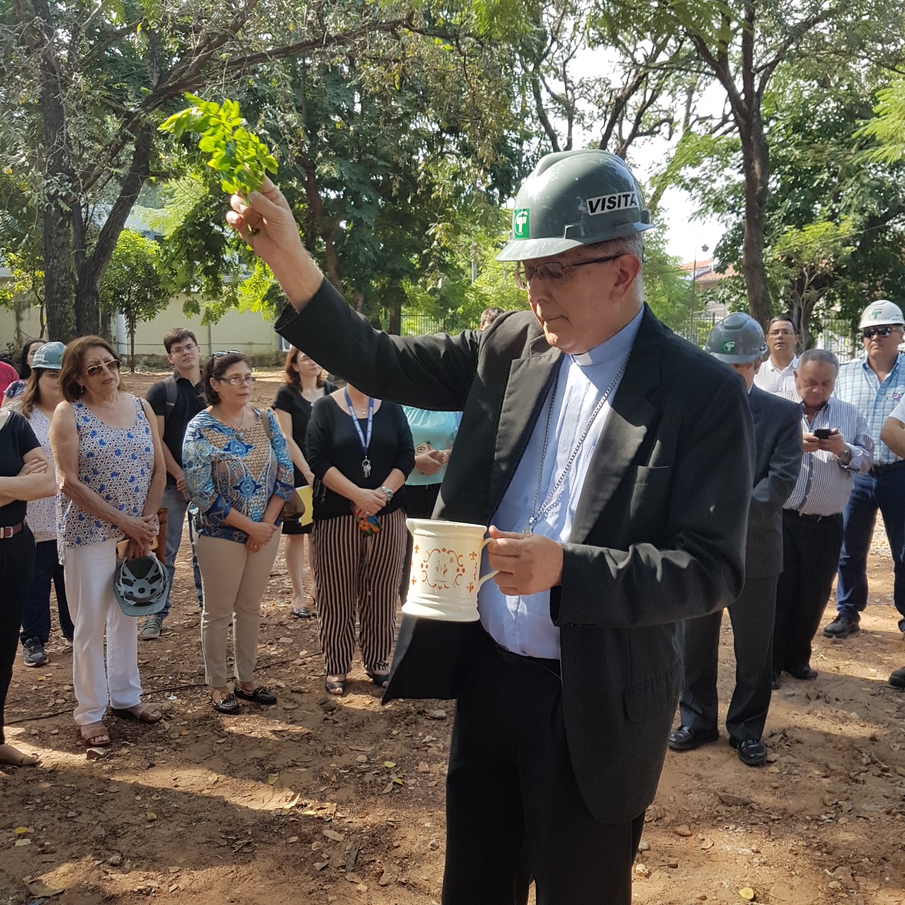 A continuación el presidente de la Conferencia Episcopal Paraguaya y Gran Canciller Mons. Edmundo Valenzuela Mellid, sdb, Arzobispo Metropolitano de la Santísima Asunción bendijo la obra y expreso “Cristo Jesús es el cimiento, es el cimiento de la universidad católica, es lo indispensable y eternamente confesado por la iglesia católica, por todos nosotros, que hoy en este acontecimiento soñamos un futuro mejor para todo lo que significa la incidencia de la Universidad Católica en la ciencias de salud en nuestro país, América latina y el mundo.”