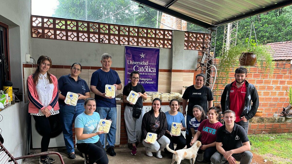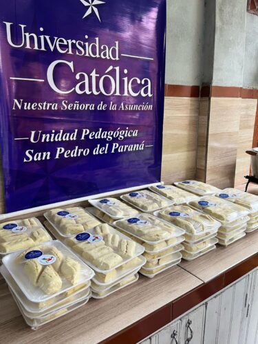 El pasado 12 de abril, docentes, directivos y estudiantes de la Universidad Católica “Nuestra Señora de la Asunción” Unidad Pedagógica San Pedro del Paraná participaron de la actividad de extensión universitaria “Chipa Apo”, donde donaron tradicionales chipas paraguayas a 100 familias de zonas periféricas de la ciudad.