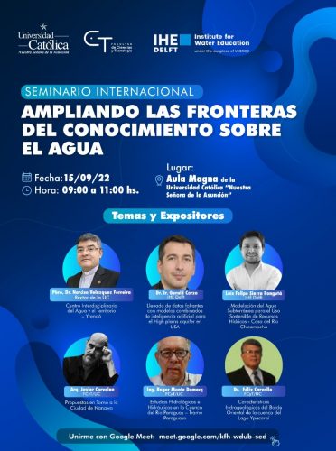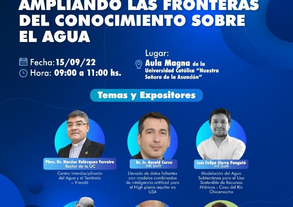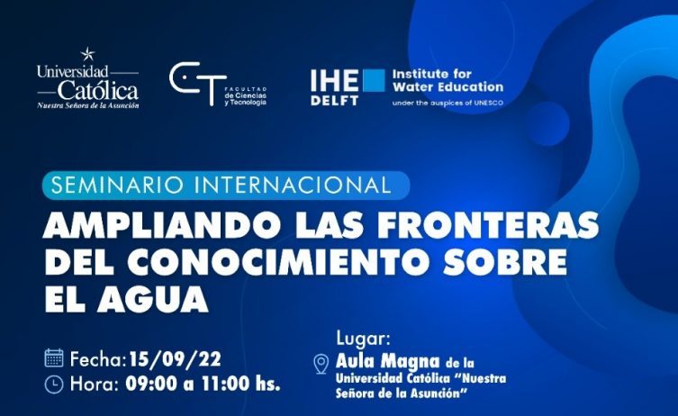 La Facultad de Ciencias y Tecnología (FCyT) de la Universidad Católica Nuestra Señora de la Asunción (UC) y el IHE Delft Instituto de Educación del Agua de los Países Bajos, abrirán una discusión sobre la gestión del territorio y el agua, el mismo se realizará el jueves 15 de septiembre en el Aula Magna de la Universidad Católica “Nuestra Señora de la Asunción”, de 09:00 a 11:40 horas.