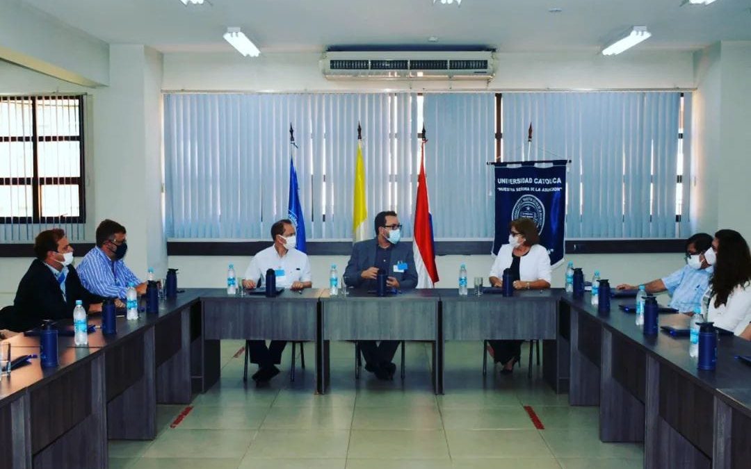 El miércoles 16 de marzo, en la Universidad Católica Campus Alto Paraná, se tuvo la grata visita de responsables de la gestión de la Universidad Federal de Itajubá _UNFEI de Minas Gerais, Brasil. La comitiva estuvo compuesta por: Edson da Costa Bortoni– Rector, Guillerme Bastos – Pro-Rector de Extensión,Tales Cleber Pimenta – Director de Relaciones Internacionales Dagmar Luz de Andrade – Presidente AD-UNIFEI, Fernando de Menezes Silva – AD-UNIFEI.