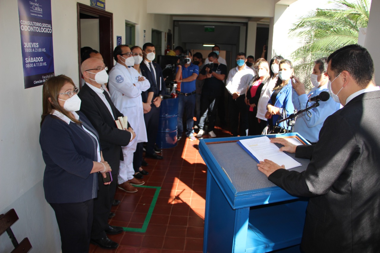 En el Campus Universitario Itapúa se llevó a cabo la inauguración de la Sala de Quirófano de mediana complejidad de la carrera de Odontología y el nuevo Laboratorio de Ciencias Básicas de la Facultad de Ciencias de la Salud, en un acto oficial presidido por el Monseñor Francisco Pistilli, Obispo de la Diócesis de Encarnación con el acompañamiento de autoridades de la UC Itapúa.