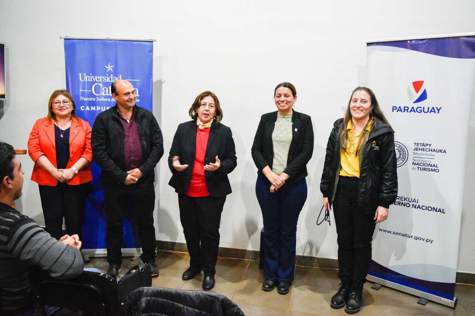 El miércoles 26 de julio se presentaron los avances del Proyecto Marca Turismo San Cosme y Damián, realizado en el marco de cooperación existente entre la UC Campus Itapúa y la SENATUR. Dicha presentación estuvo a cargo de la Mgter. Rosa Esther Encina Fretes, Directora General de la UC Itapúa y la Señora Verónica Stéfani, Secretaria Departamental de Turismo y Cultura.