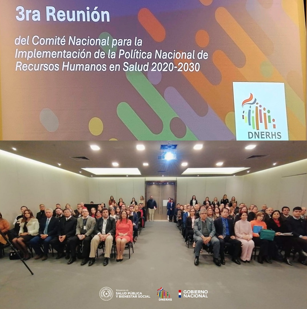 En dicha reunión se presentaron los avances del Plan para la implementación y el monitoreo de la PNRHS PY 2020-2030, aprobado por Resolución S.G. Nº 488/2022 y los Catálogos del Ministerio de Salud Pública y Bienestar Social para las Especialidades Clínicas de las carreras de Enfermería, Medicina y Odontología.