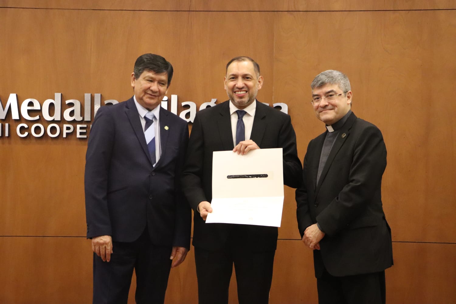 Así mismo, el Rector Pbro. Dr. Narciso Velázquez Ferreira y el presidente de la Cooperativa Medalla Milagrosa Lorenzo Barreto hicieron un reconocimiento a los docentes con la entrega de menciones honoríficas por su aporte a la cultura y la educación.