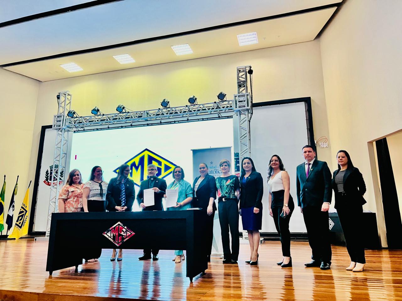 La firma del convenio tuvo lugar en el Centro de Convenciones de la ciudad de Ponta Porã. Por parte de la Universidad Católica, firmó el Rector, el Pbro. Dr. Narciso Velázquez Ferreira, quien estuvo acompañado por una comitiva de la institución encabezada por la Directora General Dra. Dina Nuñez Abadie, mientras que la Faculdades Magsul estuvo representada por la Sra. María de Fátima Viegas, Directora del Colegiado Superior de la institución.