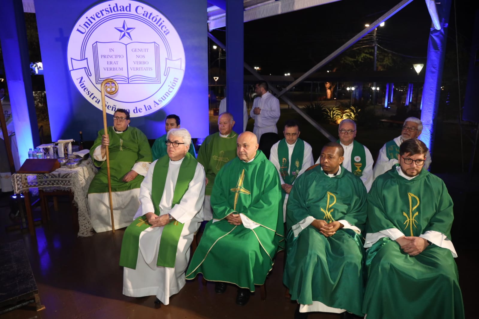 Ayer, viernes 5 de julio de 2024, la Universidad Católica «Nuestra Señora de la Asunción» llevó a cabo una ceremonia de celebración eucarística de acción de gracias y un acto académico de reconocimiento por haber conseguido la acreditación institucional. La Santa Misa fue celebrada por Su Eminencia Reverendísima Adalberto Cardenal Martínez. En la ceremonia asistieron autoridades eclesiásticas, nacionales, directivos de la Universidad Católica, docentes, personal administrativo, estudiantes, egresados e invitados especiales, quienes se reunieron para celebrar tan importante acontecimiento.