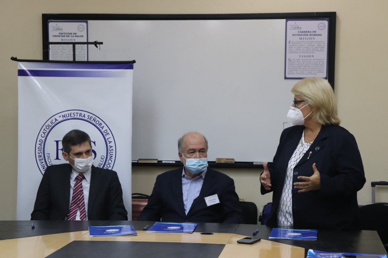 Estuvieron presentes, María Eugenia Brockmann, directora de programas de la Fundación, Diácono Bernardo Figueredo, responsable de la Pastoral Social Arquidiocesana, la Lic. Vitian Montero, Lic. Deidamia Franco y los miembros del Consejo de Facultad; Dra. Carolina Acosta, Prof. Dr. Francisco Santacruz, Dra. Leonor Velázquez, Dr. Andrés Szwako, Dra. Amelia Galeano Burgos y Dr. Víctor Báez.