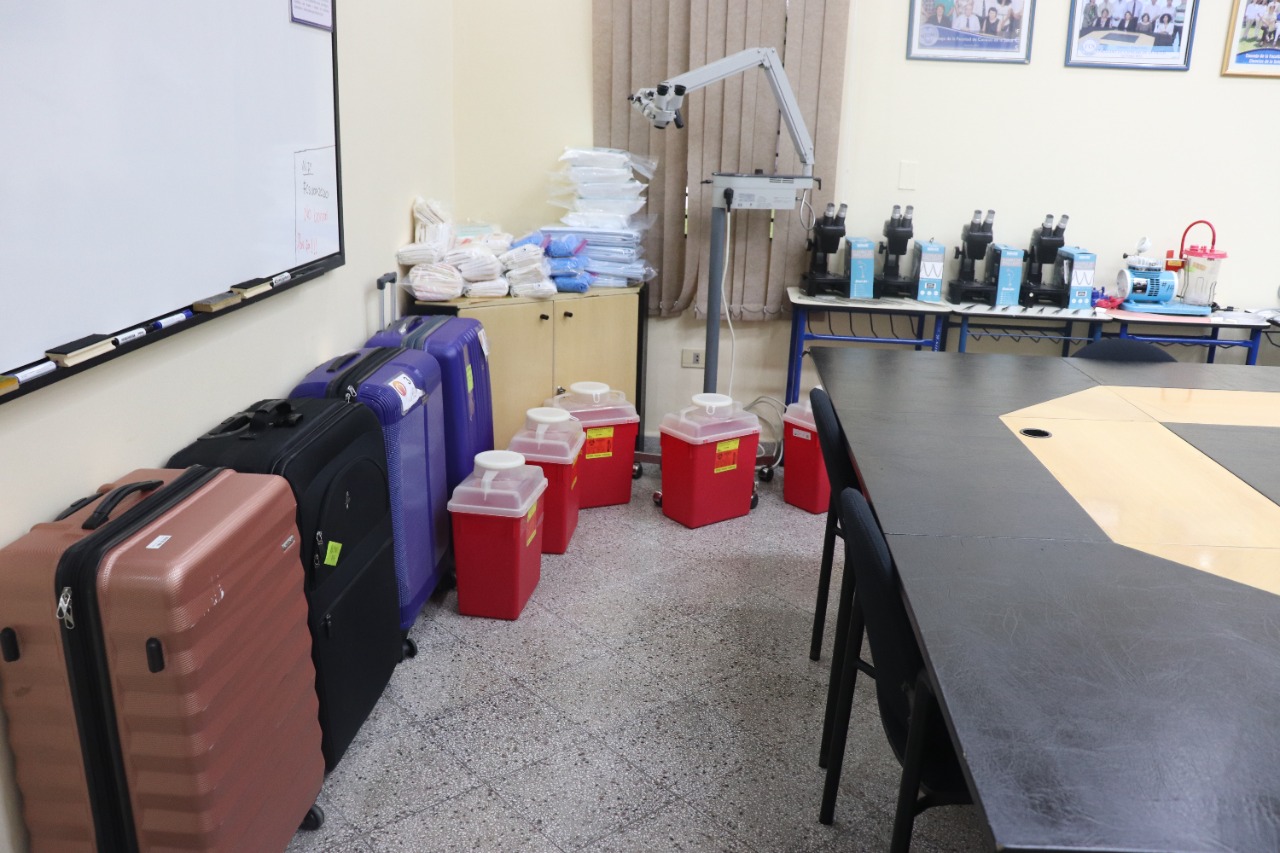 Previo al acto de firma, la Fundación Solidarity Brigde hizo entrega de tres microscopios quirúrgicos de pie Marca Zeis de alta complejidad, tres bandejas de instrumentales para dirección microquirúrgica (microtijeras, microdisectores) e insumos de bioseguridad y más que serán utilizados para montar el laboratorio que se llamará laboratorio de simulación quirúrgica.