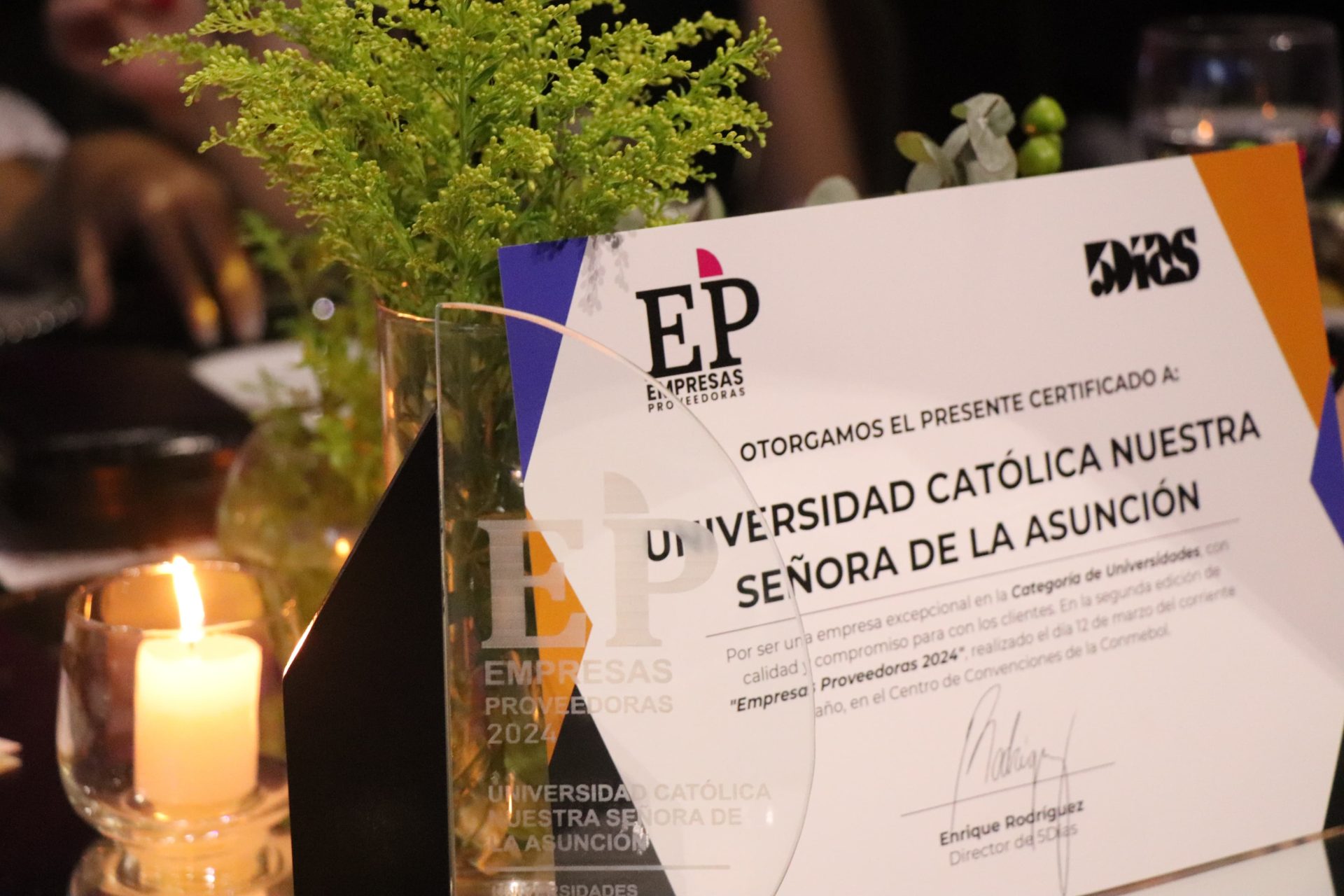 La Universidad Católica «Nuestra Señora de la Asunción» fue galardonada por segundo año consecutivo con el Premio «Empresas Proveedoras», en la categoría universidades, en el marco del evento Top Of Mind 2024 del Diario 5 Días, en reconocimiento a la excelencia en el servicio de la educación superior. La ceremonia se realizó la noche del martes 12 de marzo y marcó un hito importante al revelar las 50 empresas más destacadas en la premiación de las «Empresas Proveedoras».