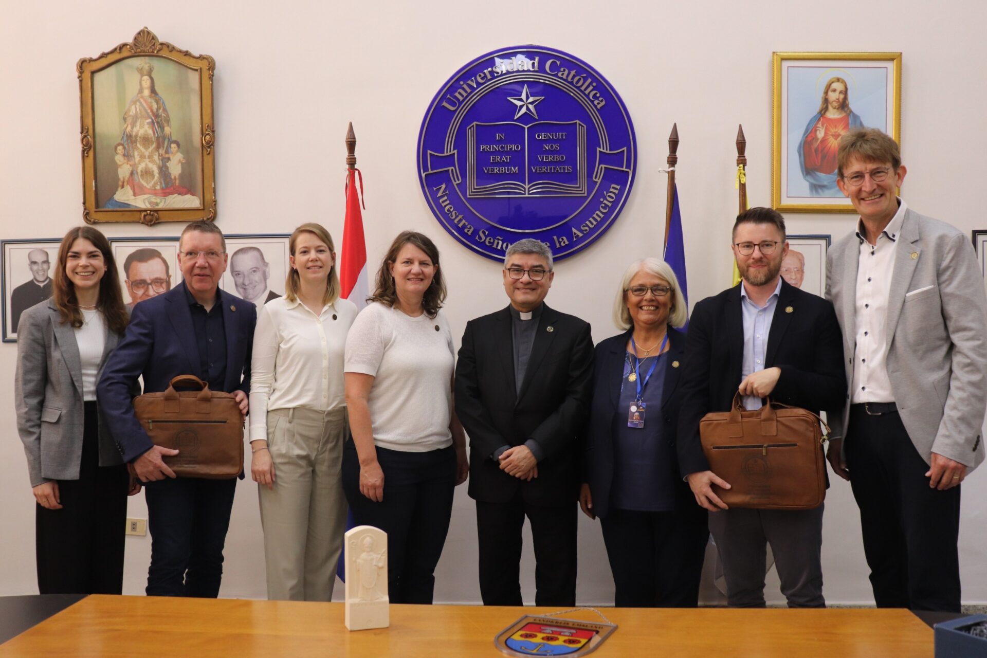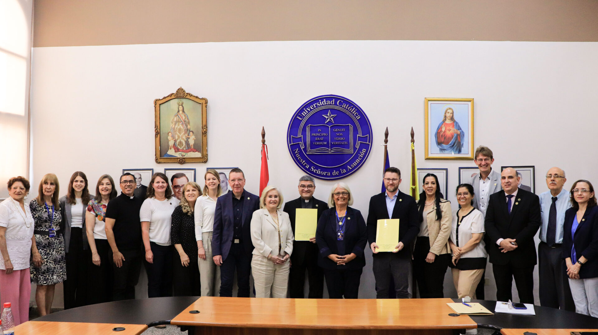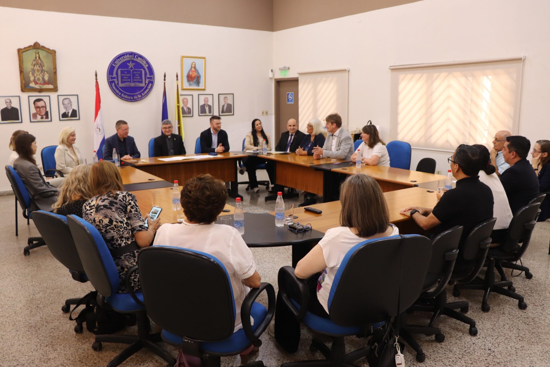 La Universidad Católica «Nuestra Señora de la Asunción» firmó en la mañana de hoy, martes 5 de noviembre de 2024, un convenio marco de cooperación con la Unión de Hospitales Católicos de la Diócesis de Osnabrück, Alemania, y la Gobernación del Emsland, Alemania. Este acuerdo tiene como objetivo principal impulsar la colaboración en programas de enseñanza e investigación en el área de la Medicina.