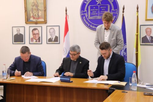 El acto de suscripción del acuerdo se llevó a cabo en la sala de reuniones del Rectorado, y contó con la participación de destacadas autoridades de las instituciones involucradas. Por parte de la UC, el acuerdo fue firmado por el Rector, el Pbro. Dr. Narciso Velázquez Ferreira; por parte del Hospital San Bonifacio, el administrador Martin Andreas Johannes Diek; y por la Gobernación del Emsland, el representante Timo Deiters.