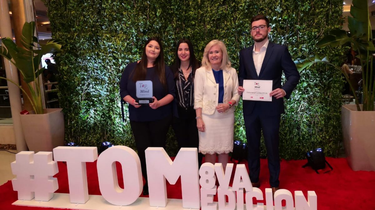 La vicerrectora de administración y finanzas, María Teresa de Jesús Servín Abente, junto con Ana Belén Sánchez, Presidente de la FEUCCA; Carlos Auad – Vicepresidente de la FEUCCA y Melisa Lacasa, Presidente del CECCAE recibieron el reconocimiento que se obtuvo gracias al arduo trabajo realizado desde los inicios de la Universidad para ofrecer una formación de calidad basada en valores.