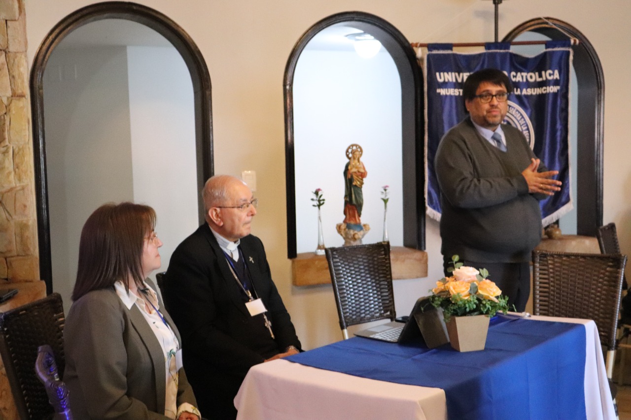 Participan el Mons. Edmundo Valenzuela Mellid, Gran Canciller de la UC, Pbro. Dr. Narciso Velázquez Ferreira, Rector de la Universidad, los vicerrectores Mag. Teresa de Jesús Servín Abente y Mag. José Guillermo Von Lücken, directores de campus y encargados de despacho de los 6 campus universitarios y 11 unidades pedagógicas, así como el gabinete técnico del Rectorado y Vicerrectorado de la Universidad Católica.