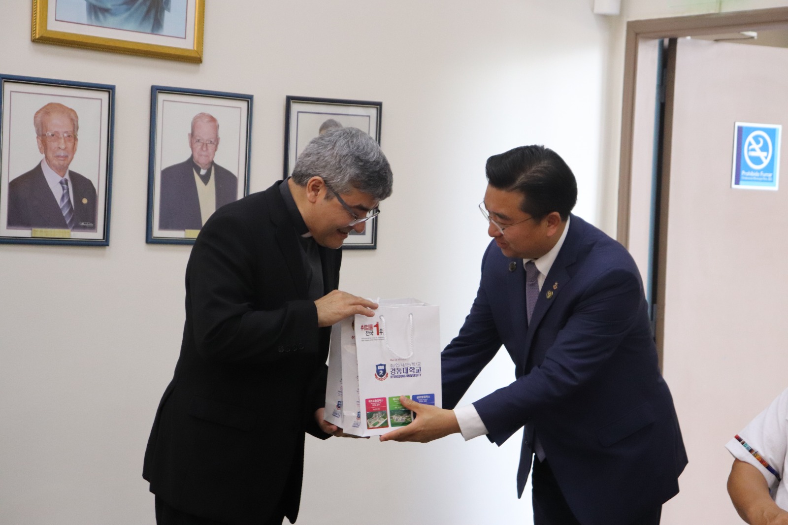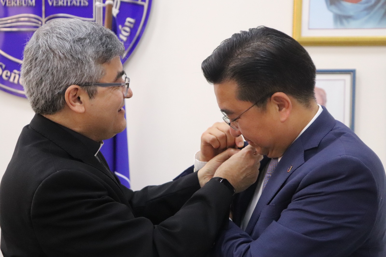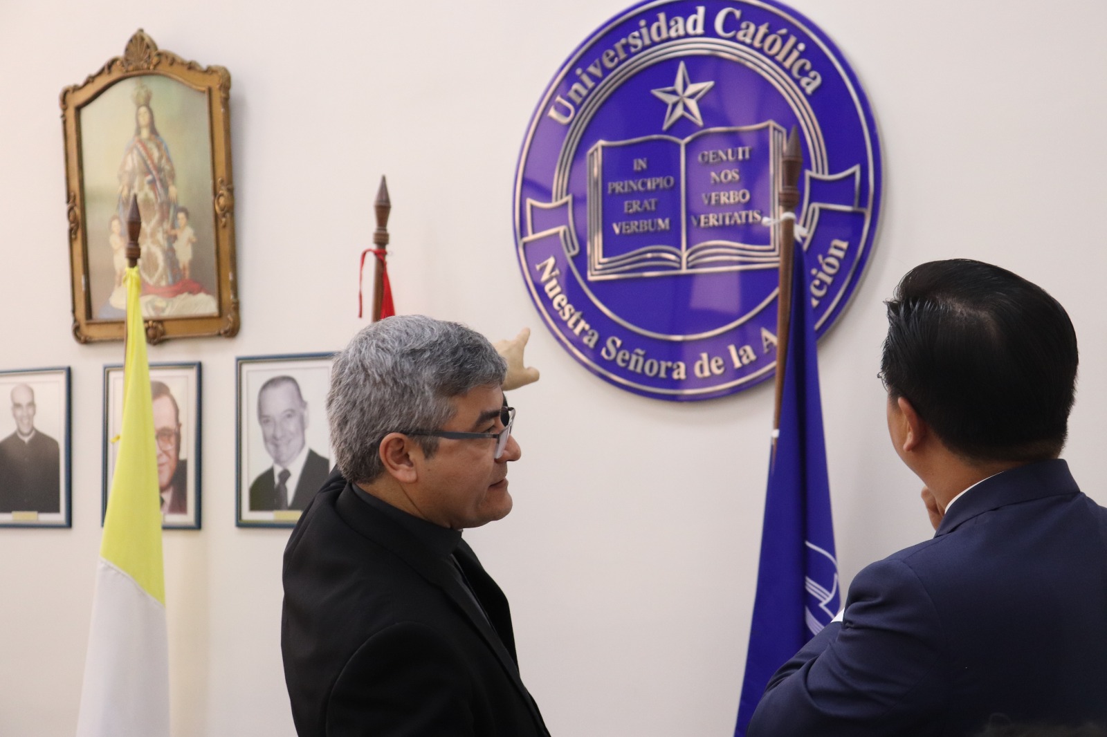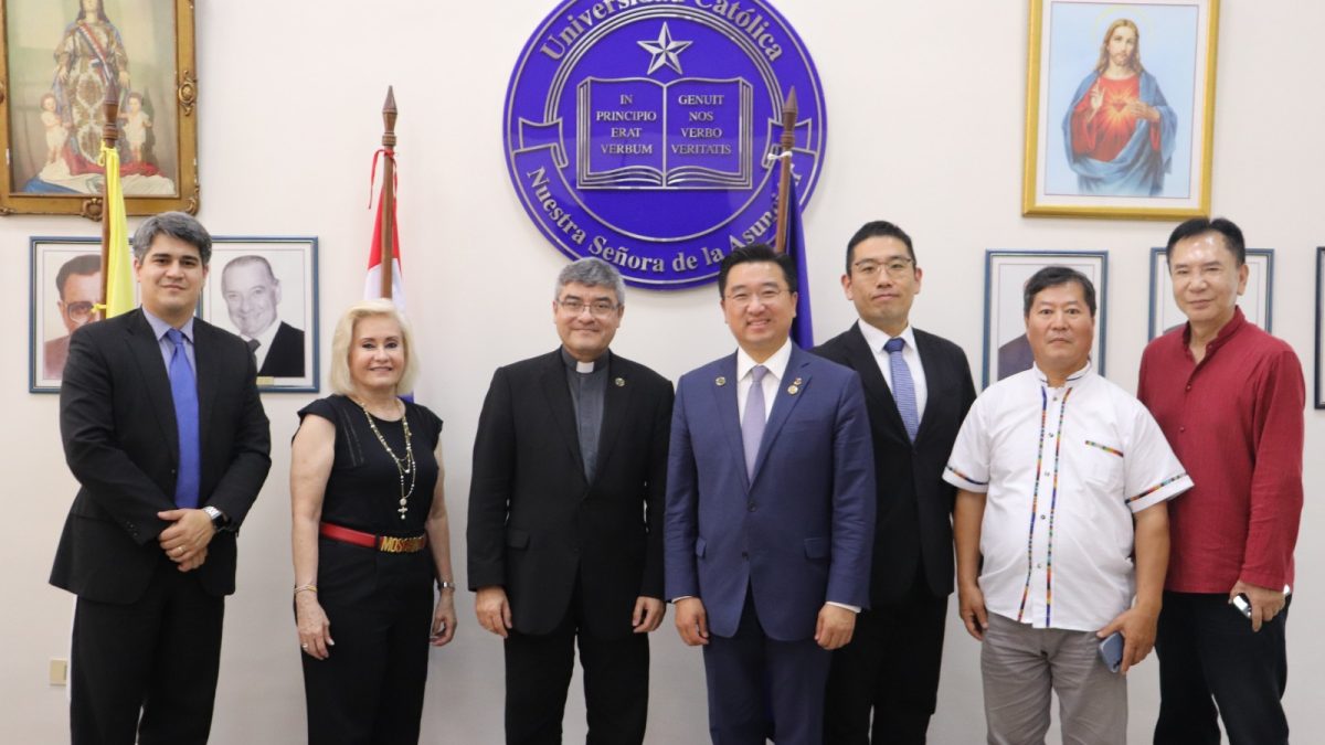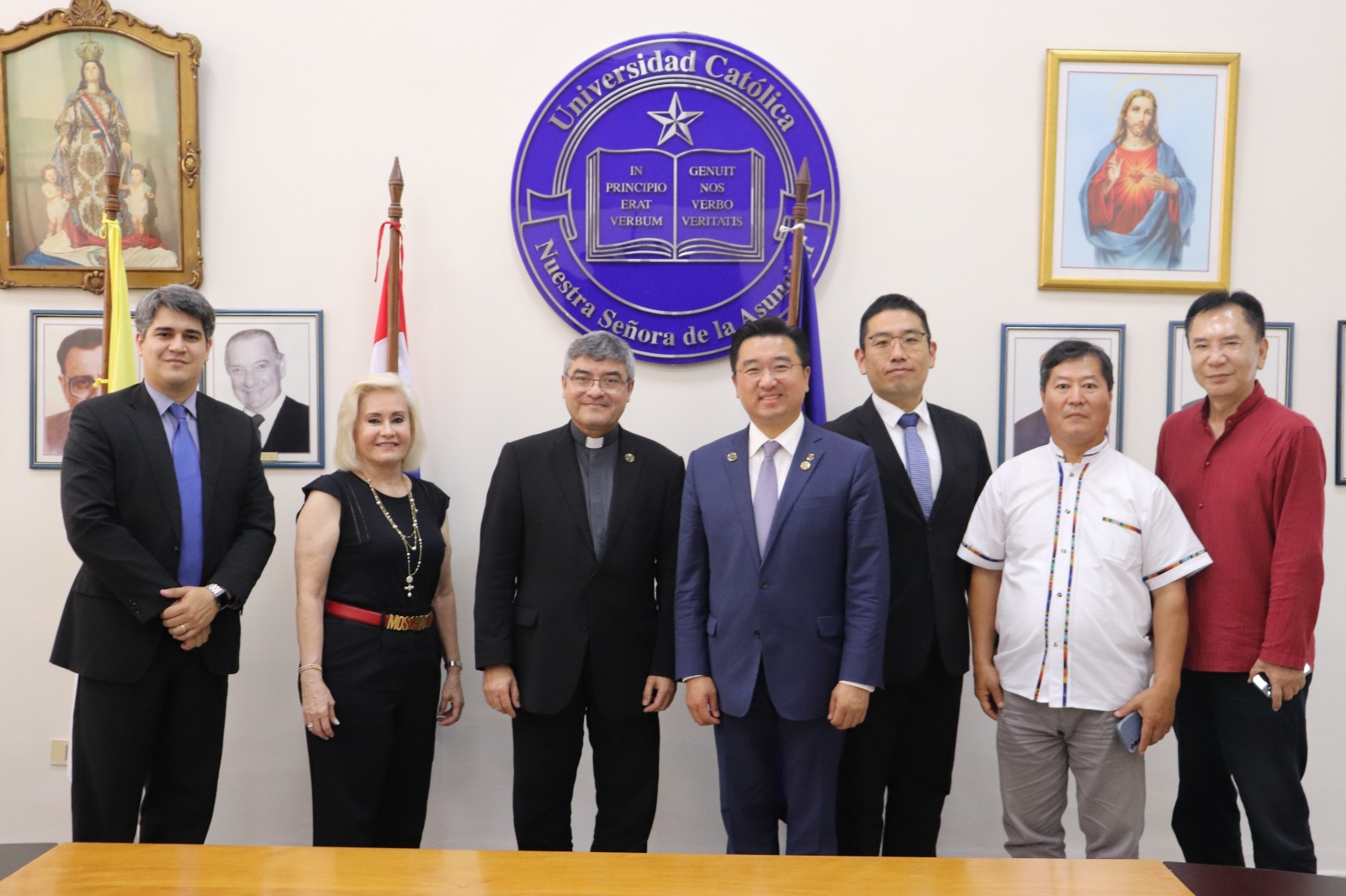 El Rector Pbro. Dr. Narciso Velázquez Ferreira y la Dra. Teresa Servín Abente, Vicerrectora de Administración y Finanzas, recibieron en la sede del Rectorado a una comitiva de representantes de la Kyungdong University de Corea del Sur, en un ameno encuentro desarrollado el martes 5 de diciembre, conversaron sobre futuros lazos de fraternidad que beneficien a estudiantes, docentes e investigadores de ambas instituciones para intercambios académicos y con vistas a desarrollar proyectos conjuntos, sean de docencia, investigación o extensión, así como propiciar intercambios que ayuden a fortalecer la formación de profesionales.