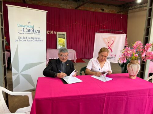 La Unidad Pedagógica Pedro Juan Caballero de la Universidad Católica «Nuestra Señora de la Asunción» firmó un convenio marco de cooperación conjunta con la Asociación de Apoyo Contra el Cáncer de Mama en Amambay (AACCMA). Este acuerdo busca promover actividades científicas, académicas y culturales que beneficien tanto a la comunidad universitaria como a los esfuerzos de AACCMA en la lucha contra el cáncer de mama.