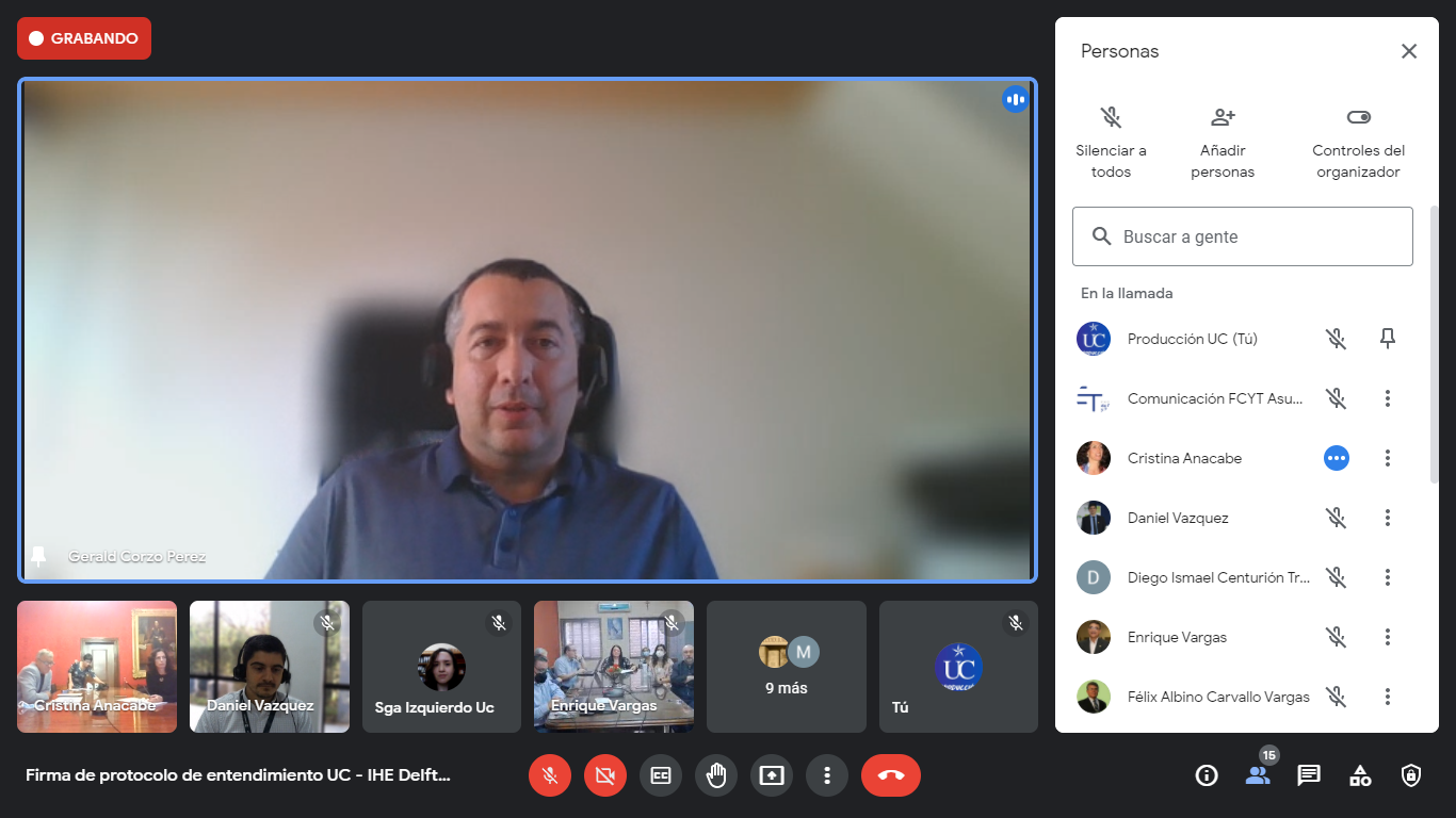 Por la Universidad Católica «Nuestra Señora de la Asunción» suscribió el convenio el Pbro. Dr. Narciso Velázquez Ferreira, rector de la UC y por la UNESCO IHE Delft Institute for Water Education, el rector Prof. Eddy Moors. En el encuentro estuvieron presentes los promotores del Convenio; Ing. Norma Cantero, Decana de la Facultad de Ciencias y Tecnología del Campus Universitario Asunción, Sra. Cristina Anacabe, MBA; Dr. Gerald Corzo, Investigador de la IHE, Sra. María Laura Sorrentino, de la Oficina de temas sociales y culturales del IHE y el Ing. Daniel Vázquez, MSc, Egresado de la UC y de IHE.