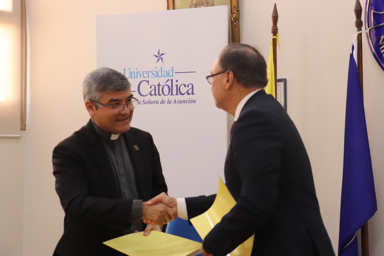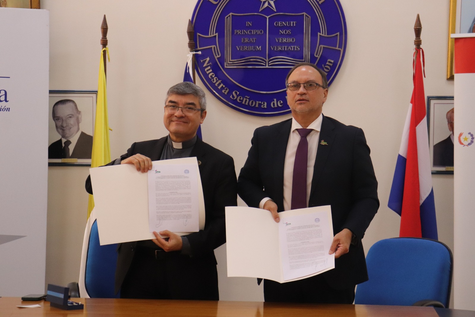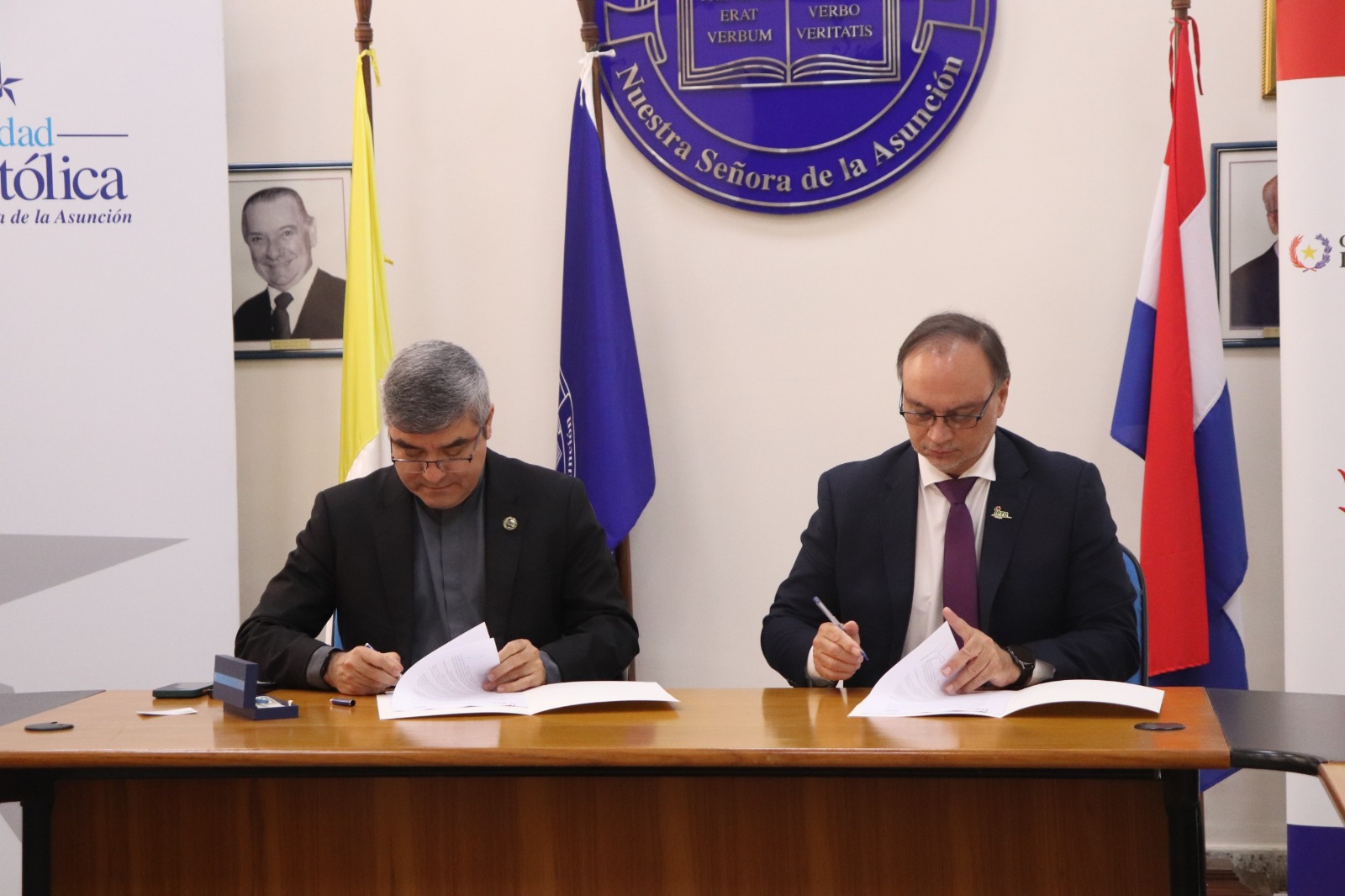 Hoy, martes 2 de julio se firmó un importante acuerdo de cooperación técnica entre el Instituto Paraguayo de Tecnología Agraria (IPTA) y la Universidad Católica «Nuestra Señora de la Asunción». Este convenio fue rubricado por el Rector de la UC Pbro. Dr. Narciso Velázquez Ferreira y el Presidente del IPTA, Ing. Agr. Edgar Alder Esteche, y tiene como objetivo principal establecer el relacionamiento interinstitucional y un marco general de cooperación técnica en los ámbitos académico, científico y tecnológico. Estas actividades se realizarán a través de acuerdos específicos.